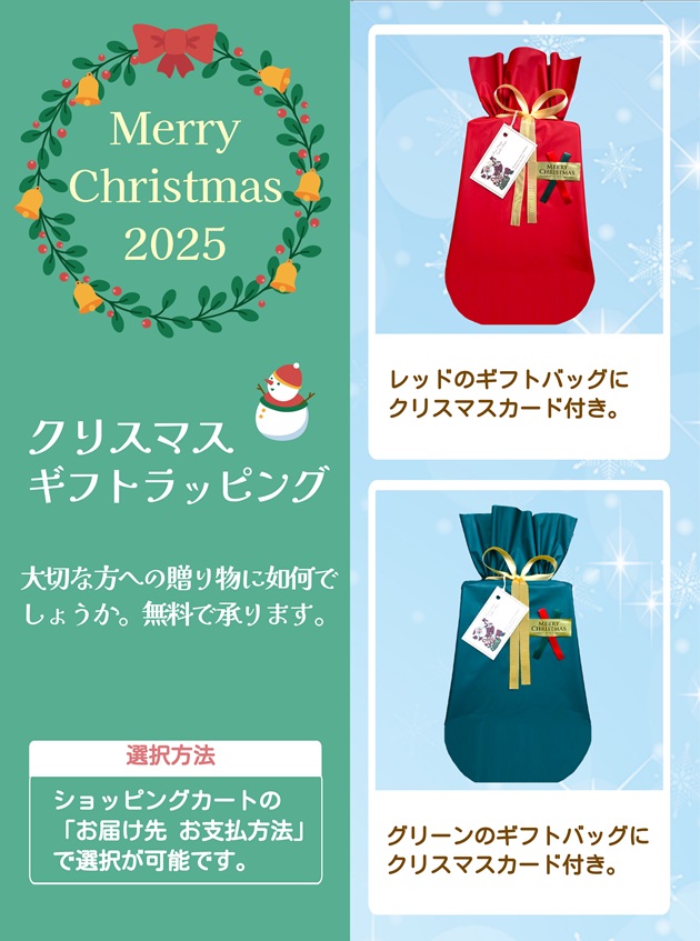 レッドとグリーンの2種類のギフトバックにかわいいサンタの
